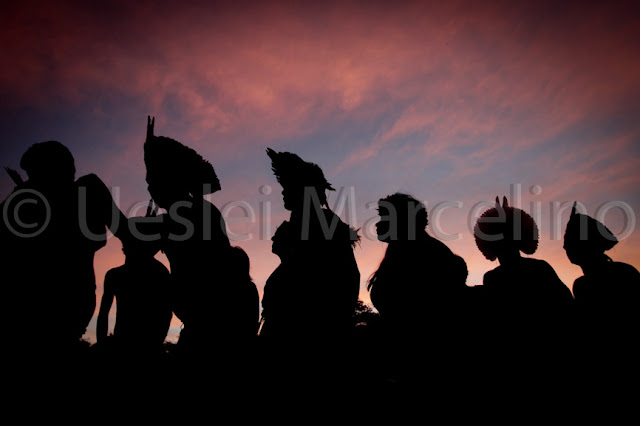 Tribo faz ritual de dança em oca contruida com a ajuda dos Kalungas